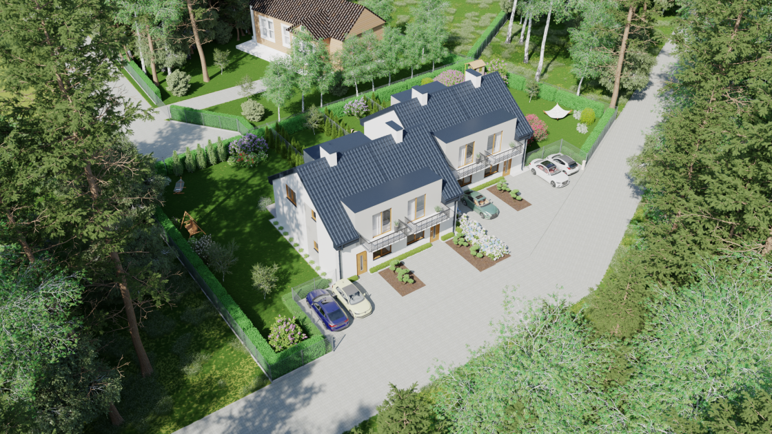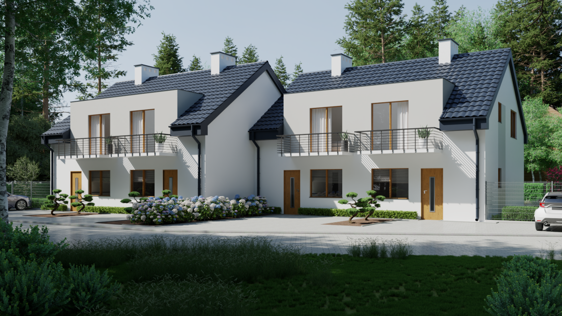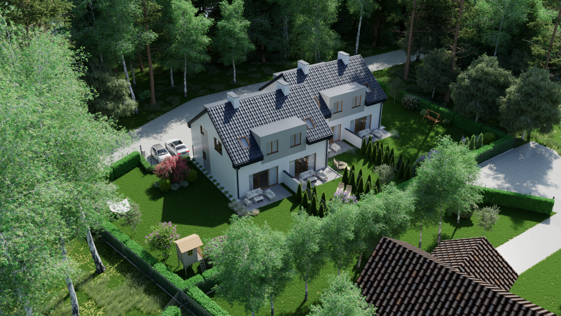 Powierzchnia użytkowa domu to przeszło 93 m2 a powierzchnie działek 180 oraz 450 m2.